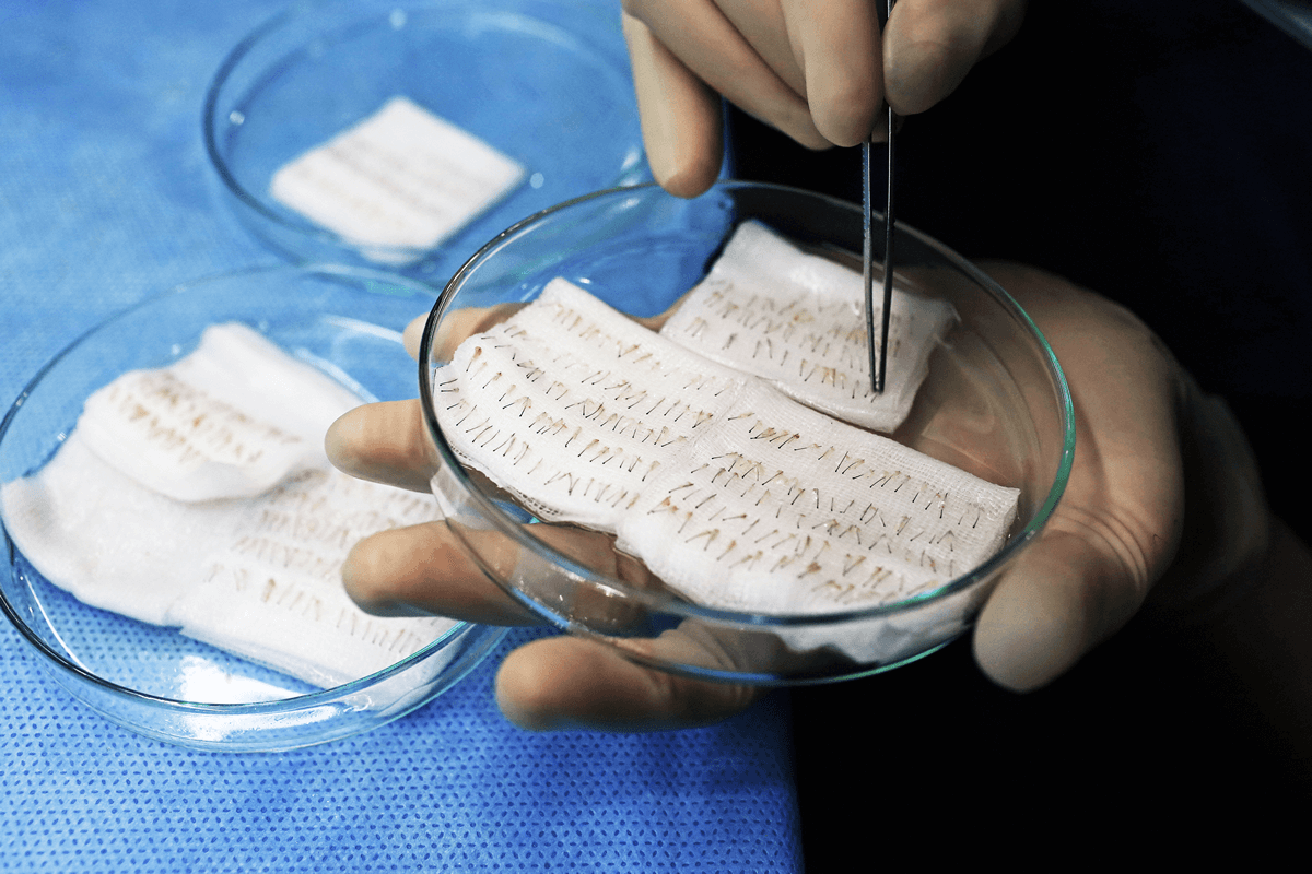 現在は自分の髪の毛を使用した自毛植毛が主流です。後頭部などの傷口が目立ちにくく毛髪の多い部分から毛包ごと髪の毛を採取し、薄毛の気になる箇所に移植していきます。