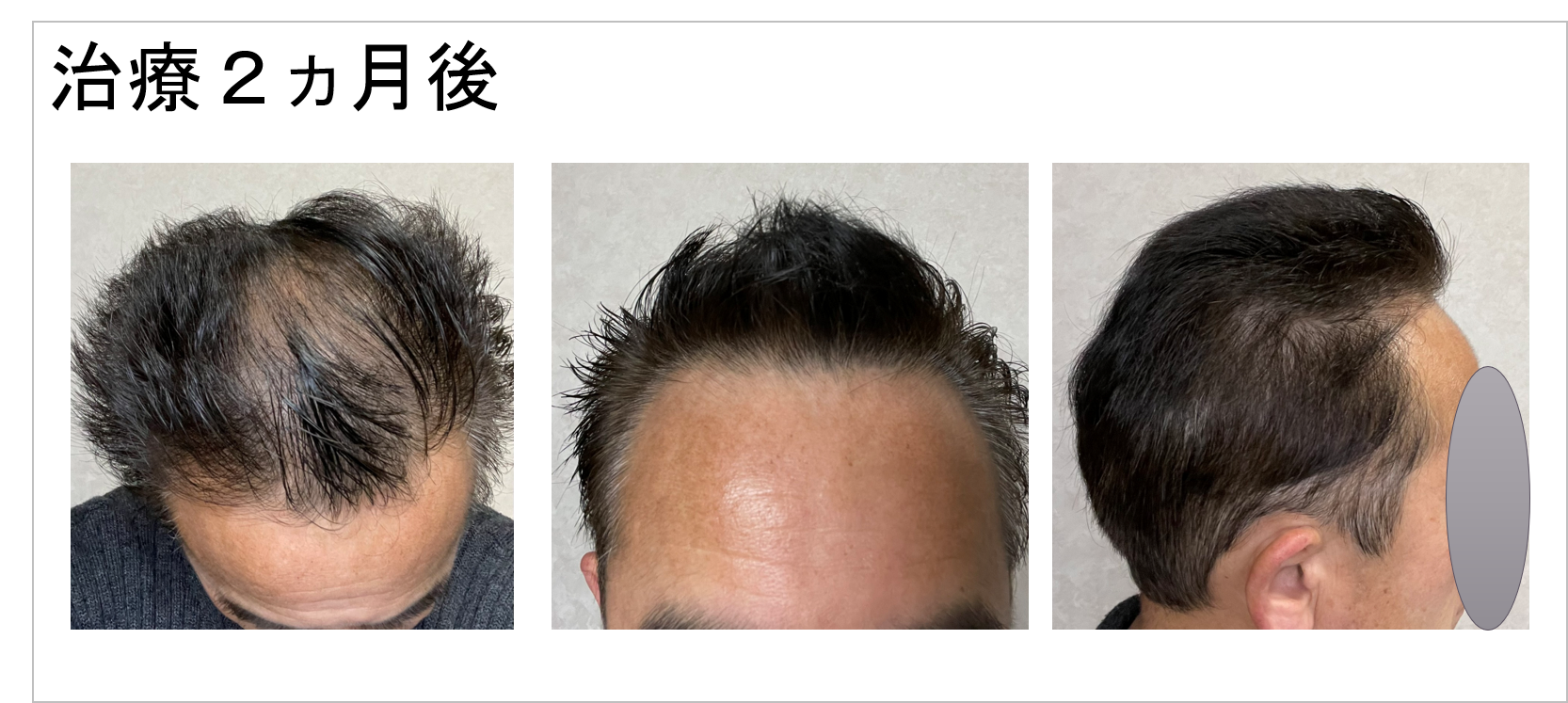 2カ月ではまだ発毛を感じられていな状態。ご本人目線では、黒く産毛が増えてきたように感じ、なんとなく期待感があるとのことでした。